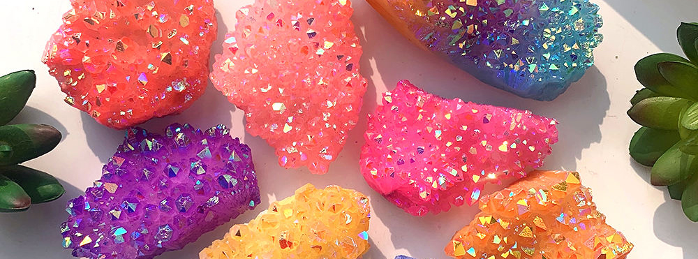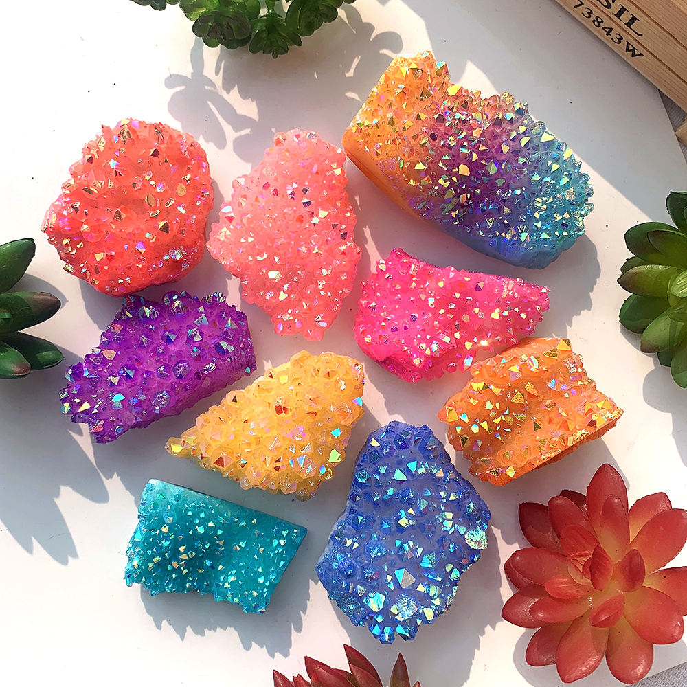 Natural Aura Clear Quartz Rainbow Crystal Cluster